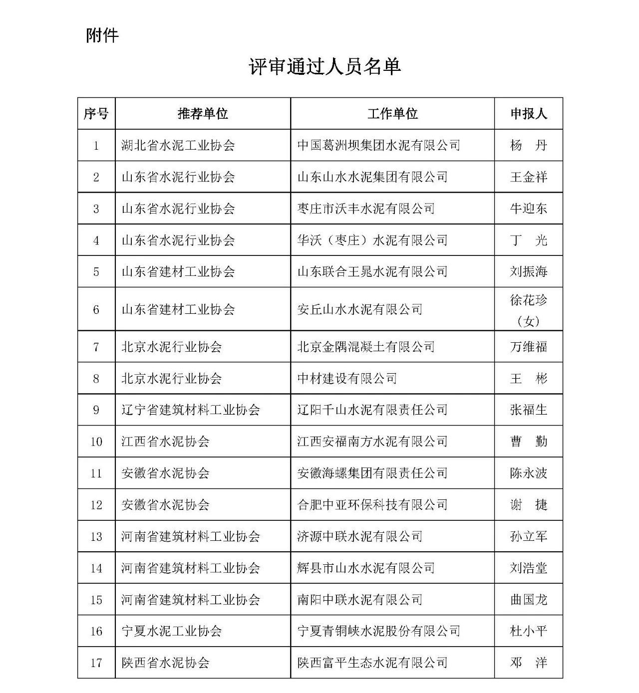 附件:評審?fù)ㄟ^名單